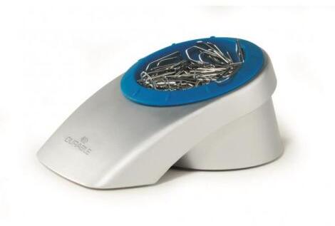 Stílusos állvány irodai klipekhez a DURABLE VEGAS termékcsalád dizájnjában, 100 klipsszel szállítva. A gemkapcsok számára kialakított nagy, mágnesezett hely lehetővé teszi azok könnyű eltávolítását. Csúszásgátló kezelés. 100 db 32 mm-es klip kapacitása. Méretek (sz×m×m) 92×63×144 mm. Szín: ezüst/kék