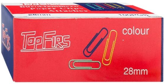 Színes műanyag bevonatú gemkapocs. Méret: 28 mm. 10 doboz/gyűjtő kiszerelésben.