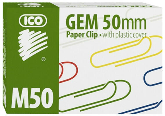 Gemkapocs ICO 50mm színes Kiváló minőségű ICO gémkapcsok, műanyag bevonattal ellátott, színes gémkapcsok. A doboz 100 darab gémkapcsot tartalmaz Mérete: 50 mm