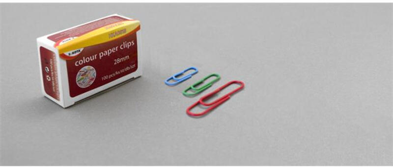 Színes műanyag bevonatú gemkapcsok kétféle méretben: 28 és 50 mm. 100 db/doboz. .