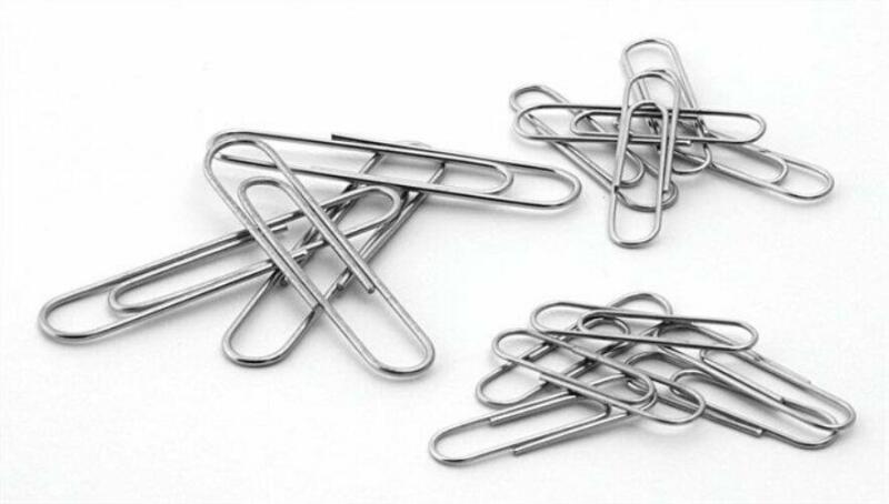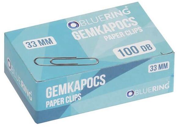 Nikkellel bevont, kerekített, fém gemkapcsok, 33mm méret. 100 db / doboz