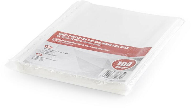 Lefűzhető genotherm A/4 dokumentumok tárolására. - az összes szabványos gyűrűs és emelőkaros iratrendezőbe lefűzhető, - felül nyitott, - áttetsző, víztiszta felület, - 11 lefűzőlyukú, - A/4-es méret, - vastagság: 50 mikronos, - Kiszerelés: 100 db/csomag, 20 csomag/doboz