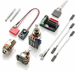 EMG-P és EMG-LJ hangszedők, 4-húros basszusgitárhoz. Tartozékok: EMG Quik-Connect kábelek, csavarok és rugók, hangerő(2) és hangszín(1) potméterek, 9V-os elem és jackdugó aljzat