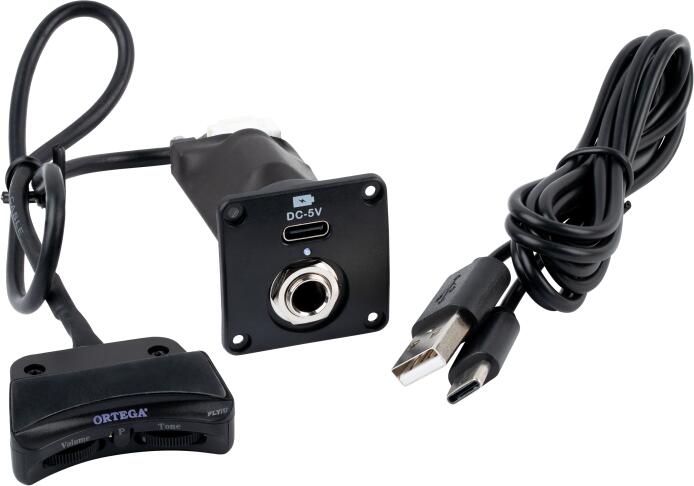 Feature 1: No need to make a side cut, easy to install Feature 2: Powered by a rechargeable (USB-C) battery Controls: Volume and Tone control (designed for inner soundhole attachment) Including: Includes a flexible pickup, cable clamp, and USB-C cable Preamp Type: Ukulele Color: Black