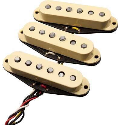 3 Single coils Non-bevelled AlNiCo 5 magnets and lacquered wires produce the classic, tight and focused sound of the '60s Original magnet staggering for even output and a RWRP midrange pickup that eliminates hum in positions 2 and 4 Colour: Vintage White