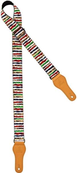Feature 1: Made from 100% cotton Feature 2: Equipped with strong faux leather ends Length: Up to 1580 mm (62.2) Width: 49 mm (1.93) Strap Type: Guitar Material: Cotton Color: Multi-Colored Design: Faux Leather Ends/Embossed logo/Striped