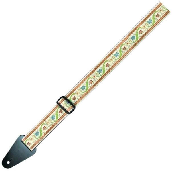 FIRE&STONE 531064 Gitárheveder Folklore Edition -Jacquard Világos, Virágmintás 50 mm széles szövetpánt szőtt jacquard-mintával igazi bőr végekkel, állítható hosszúságú 50 mm széles szövetpánt szőtt jacquard-mintával igazi bőr végekkel, állítható hosszúságú