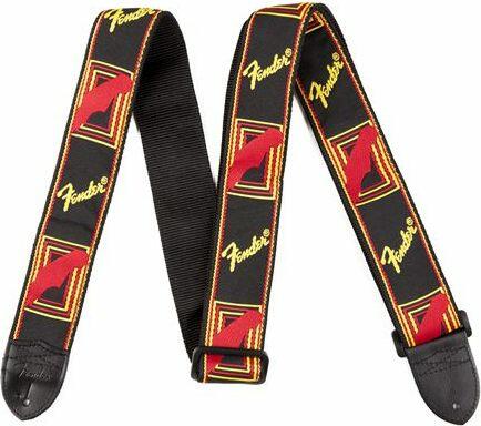 Fekete, sárga, piros gitárheveder, Fender logóval.
