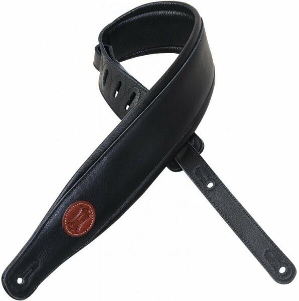 gitár heveder: minőségi ruházati bőrből készült gitár heveder, Signature széria, növényi cserzésű bőr, habszivacs bélés, kényelmes viselet, rendkívüli ellenállóság, 96,5 - 135 cm állítható hossz, 7,6 cm szélesség, fekete kivitel