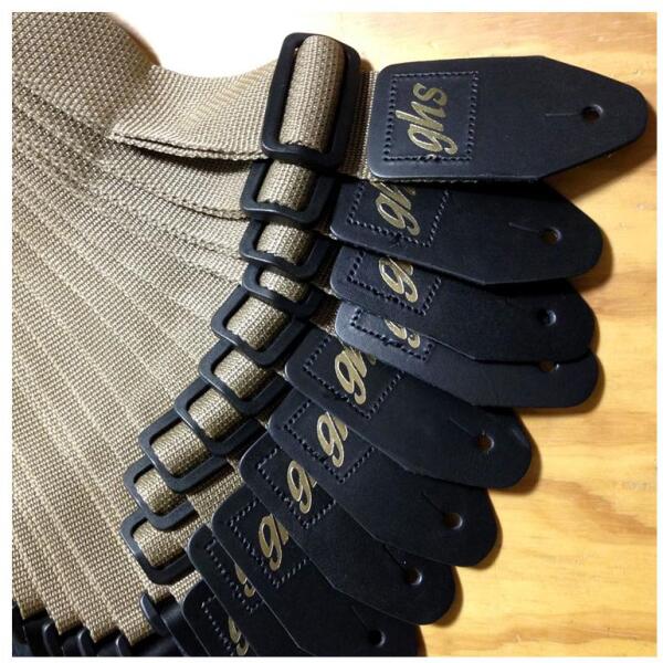 Gyönyörű kidolgozású erős pamut gitárheveder bőr végekkel