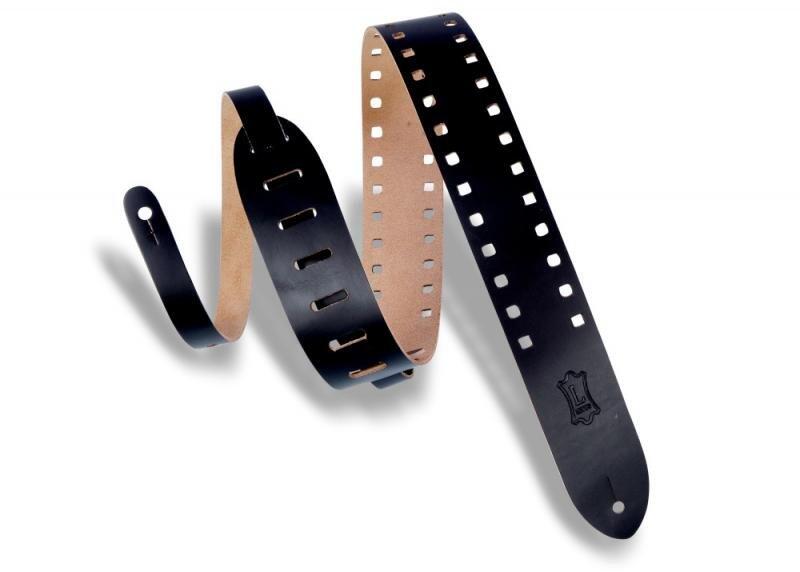 Levy's M12SPOC-BLK Gitárpánt, lyukasztott szegélyű (négyzet), bõr, 5cm széles, 144cm hosszú, fekete