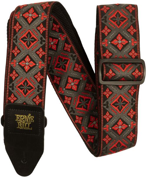 Széles 5cm-es heveder, strapabíró gyöngyvászonból. A színek nem eresztenek és nem nyúlik. Számítógép vezérlésű, extra erős gépi varrással rögzített prémium bőr végekkel. A bőr végeken arany színű Ernie Ball logóval. Extra állítható hosszúság 100