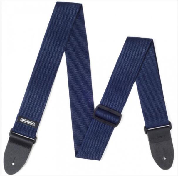 Puha, kényelmes, ám ellenálló gyöngyvászonból készült heveder gitárhoz, bőr végek, egyszerűen állítható hossz, szélesség: 5 cm, hossz: 165 cm, kék szín