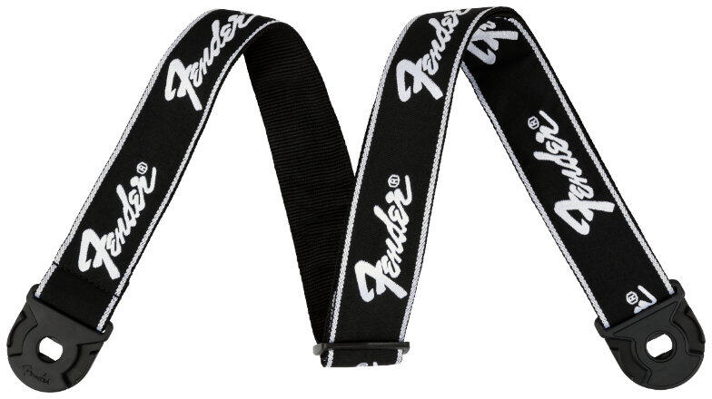 Fekete gitárheveder, piros Fender logóval.