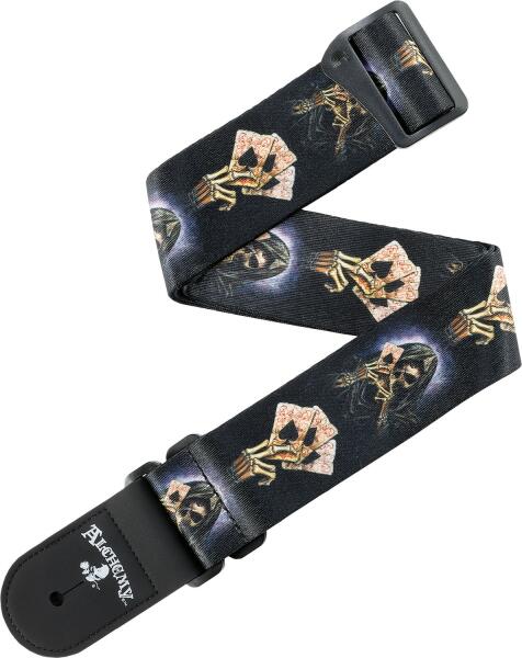 D'Addario 50AL14 Alchemy Woven gitárheveder Anyag: Nyomtatott poliészter Szélesség: 5 cm Hosszúság: 89 - 151 cm Minta: Reapers Ace
