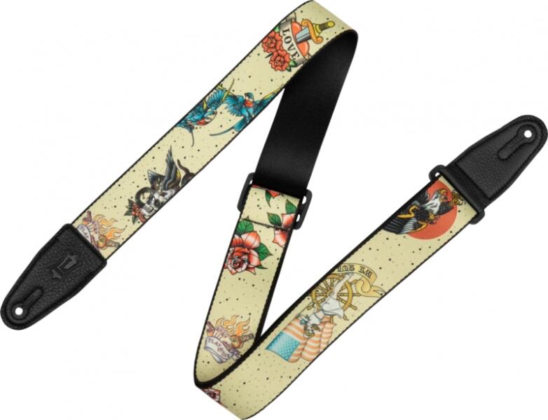 Széles 5cm-es heveder, strapabíró gyöngyvászonból. A színek nem eresztenek és nem nyúlik. Számítógép vezérlésű, extra erős gépi varrással rögzített prémium bőr végekkel. A bőr végeken arany színű Ernie Ball logóval. Extra állítható hosszúság 100 - 170 cm között.