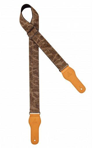 Feature 1: Made from 100% cotton Feature 2: Equipped with strong faux leather ends Length: Up to 1580 mm (62.2) Width: 49 mm (1.93) Strap Type: Guitar Material: Cotton Color: Brown Design: Faux Leather Ends/Embossed logo/Brown Jean