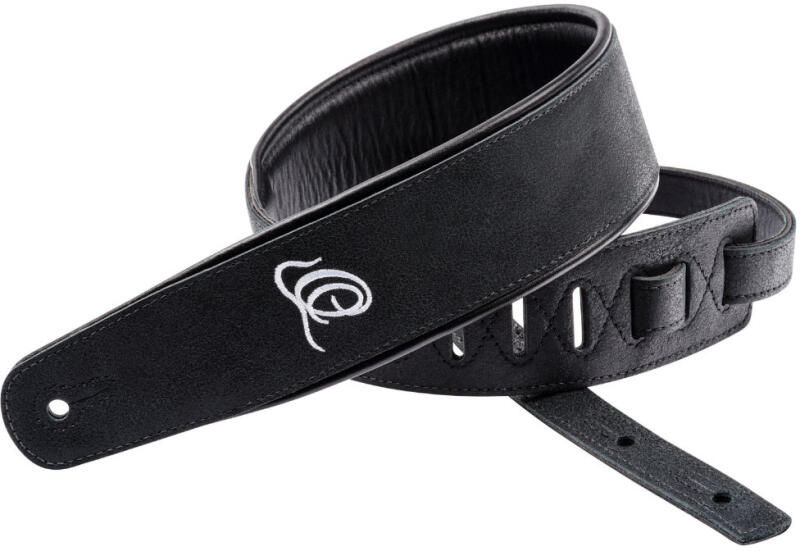 gitár heveder: bőr, Signature széria, béléssel, 7,6 cm, fekete