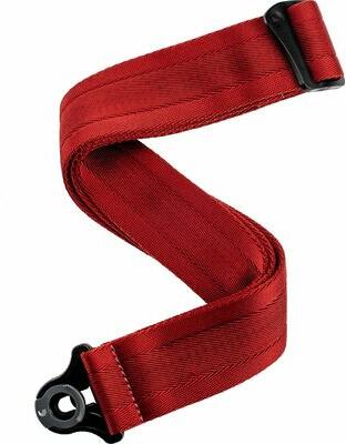 Tartós és kényelmes, 2 hüvelyk (5 cm) széles heveder, fekete poliészter „biztonsági öv szövetanyagból. A húzóerőkkel szembeni maximális ellenállás és a hosszú élettartam érdekében a gitárpánt végei minőségi bőrből készültek, és extra gépi varrást és megmunkálást kaptak. A heveder mindkét végén arany színű EB embléma található. Az állítható csat feke