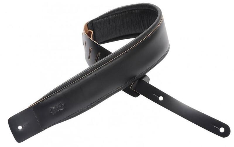 gitár heveder: bőr, szivacs béléssel, szélesség: 7,6 cm, fekete szín