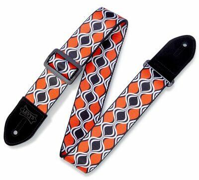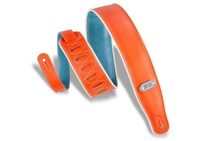 Levy's M26VCP-ORG_TEL Gitárpánt, kétoldalú, világos szélek, vinyl, 7cm széles, 109-142cm hosszú, narancs-pávakék