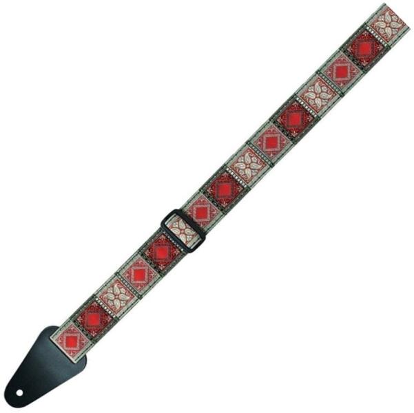 FIRE&STONE 531065 Gitárheveder Folkore Edition -Jacquard Piros-ezüst-fekete 5 0 mm széles szövetpánt szőtt jacquard-mintával igazi bőr végekkel, állítható hosszúságú 50 mm széles szövetpánt szőtt jacquard-mintával igazi bőr végekkel, állítható hosszúságú