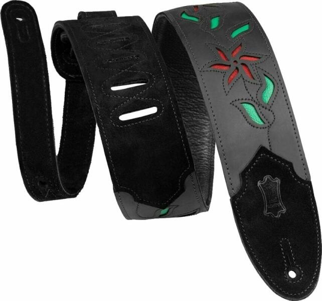 Ez egy automatizált szoftver általi fordítás:64 mm széles bőr gitárszíj a Flowering Vine sorozatból. A létraszerű előtolás-szabályozás lehetővé teszi a szíj hosszának beállítását 47/1194mm – 54/1137mm között. Az övet vágott és festett virágok és levelek díszítik, valamint a köztük futó szőlőt imitáló varrások. Mindkét oldalán puha, kétrétegű velúr va
