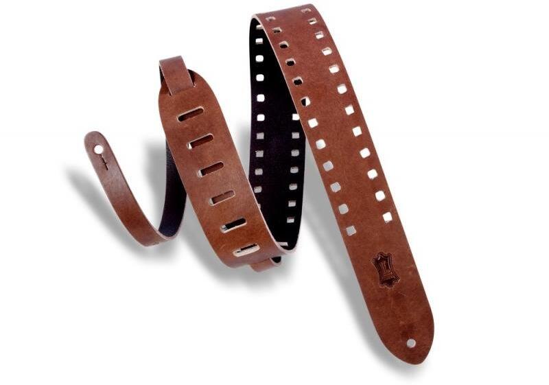 Levy's M12SPOV-BRN Gitárpánt, lyukasztott szegélyű (négyzet), polírozott bõr, 5cm széles, 144cm hosszú, barna