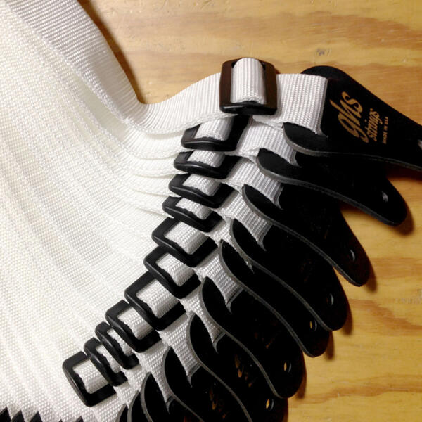 GHS A8WH gitár heveder, nylon, fehérÁllitható nylon gitár heveder, bőr végekkel, 5 cm széles, ...