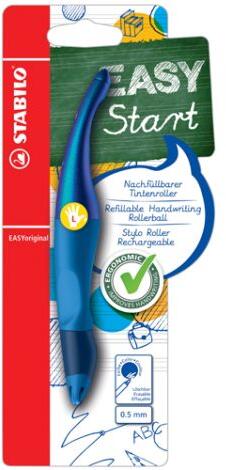 Golyógörgő STABILO EASYEredeti holográf. Ergonomikus kialakítás, balkezesek számára készült. A nyugodt testtartás segít a kézizom fáradtság és az azt követő kézfájdalom ellen írás közben. Könnyen siklik a papíron, tiszta írás, elkenődés nélkül. A görgős pálya szélessége 0,5 mm. Toll színe: holografikus kék. Töltelék: kék.