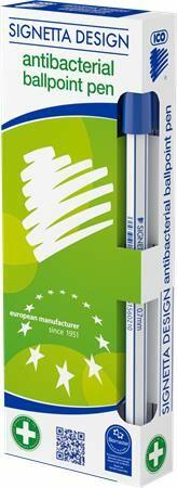 Antibakteriális eldobható golyóstoll biztonsági kupakkal! -a műanyag alkatrészek antibakteriális védelmet adó Biomaster ezüst-ionokat tartalmaznak (biocid hatóanyag: ezüst-foszfát üveg) -bizonyítottan baktériumölõ tulajdonsággal rendelkezik, a felszínen megtelepedett kórokozók 24 óra leforgása alatt, 99,9% hatékonysággal elpusztulnak -az antibakteriális hatást az anglia