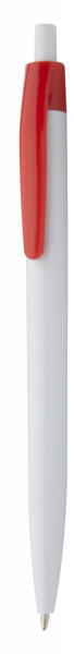 Műanyag golyóstoll, fehér színű testtel, színes klipsszel. Kék tollbetéttel szállítjuk.