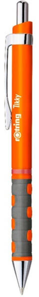 A Golyóstoll, 0,8 mm, nyomógombos, neonnarancs tolltest, ROTRING Tikky, kék (R2205269) Ergonómiailag tervezett, enyhén hullámos fogórésze biztos tartást tesz lehetővé -a nyomógomb, a klip és a precíziós hegy kialakítás garantálja a minőségi munkavégzést -cserélhető betét (R0195360) -vonalvastagság: 0,8 mm -golyóátmérő 1,0 mm-hez készült, kiváló minőségű nyomtat