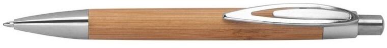 Bambusz golyóstoll ezüst kiegészítőkkel, kéken író betéttel és extravagáns hegyes klipsszel.