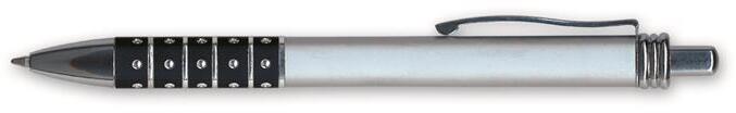 Vékony gumírozott fém nyomógombos golyóstoll ezüst színű kiegészítőkkel és kék színű tollbetéttel. Termék mérete: 0,8 x 14,2cm Emblémázását, feliratozását vállaljuk.