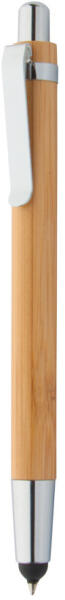 Érintőképernyős bambusz golyóstoll fém klipsszel és heggyel. Fekete tollbetéttel szállítjuk.