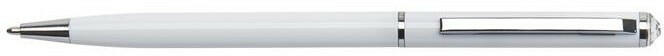 Golyóstoll, fehér "SLIM", fehér SWAROVSKI® kristállyal, 13 cm, ART CRYSTELLA® Klasszikus kivitelű, eredeti Swarovski® kristállyal díszített golyóstoll. Rendkívül kedvező ár-érték arány. A tolltest fém, logózható, lézergravírozható. Tolltest színe: fehér. Kristály színe: fehér. Betét színe: kék. Vonalvastagság: 0,7mm. Csomagolás: bársonytokban.