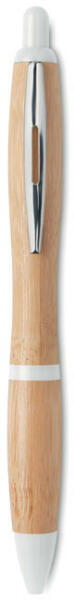 ABS és bambusz golyóstoll Nyomógombos golyóstoll bambusz toltesttel, ABS részekkel. Kéken író betéttel. A bambusz természetes anyag, színében, mintázatában és méretében esetenként eltérő lehet.