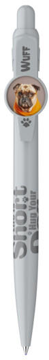 Kutyás motívumokkal díszített nyomógombos mechanikával működő golyóstoll. Cserélhető X-20-as betéttel. Golyóátmérő: 0,8 mm. Íráshossz: 2500 m. Írásszín: kék.