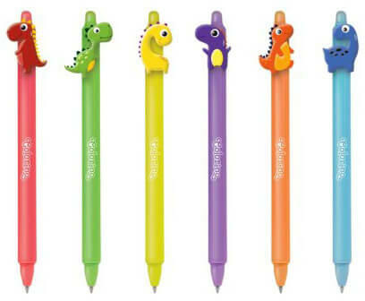 Aranyos dinó figurával díszített zselés toll, melynek különlegessége, hogy radírozható. Vonalvastagság: 0,5. Kéken ír. Több színben elérhető, az ár 1 darabra vonatkozik. Az elérhehtő szín a lenyíló ablakban választható ki. Külön rendelhető mellé radírozható tollbetét (37534PTR).