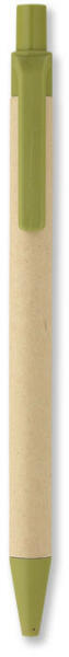 Papír/kukorica PLA golyóstoll Nyomógombos golyóstoll újrahasznosított papírból tolltesttel és PLA (100%-ban biológiailag lebomló kukoricából) részekkel. Kéken író betéttel.