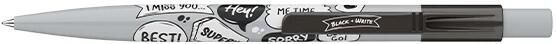 Szlogenekkel díszített nyomógombos mechanikával működő golyóstoll 0,8 mm-es kék színű golyósbetéttel.