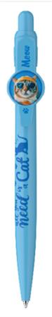 Kedves színes golyóstoll, öröm vele írni. Cicás motívumokkal díszített nyomógombos mechanikával működő golyóstoll. Cserélhető X-20-as betéttel. Golyóátmérő: 0,8 mm. Íráshossz: 2500 m. Írásszín: kék.