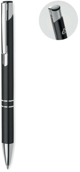 Újrahasz. alumínium golyóstoll Nyomógombos golyóstoll újrahasznosított alumíniumból. Kéken író betéttel.
