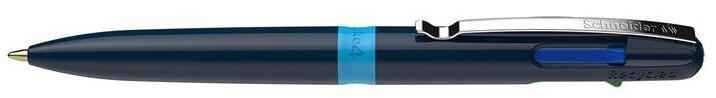 Golyóstoll, 0,5 mm, nyomógombos, négyszínű, SCHNEIDER "Take 4", sötétkék tökéletes 4 az 1-ben megoldás tervezéshez, szervezéshez, strukturáláshoz 4 színű tinta: fekete, piros, kék és zöld a színek gyorsan és könnyen válthatók "Viscoglide" tinta: könnyedebb, gördülékenyebb írást biztosít erős fémklip 92%-ban újrahasznosított műanyag tolltest vonalvastagság: 0,5