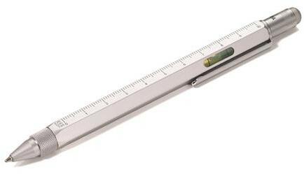 Multifunkciós golyóstoll: toll, segédeszköz és szerszámkészlet egyben. Vízmérték, centiméteres és hüvelykes vonalzó, 1:20 m és 1:50 m-es skála, laposfejes és Phillips csavarhúzó, stílusos, felhasználóbarát és felsőkategóriás minőség. éríntőfej a toll végén érintőkijelzőkhöz fekete, cserélhető tollbetéttel vonalszélesség (1,0 mm) írás élettartam hossz: