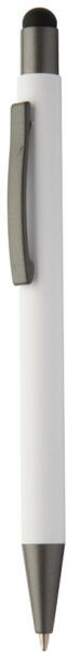 Gumírozott alumínium golyóstoll érintőképernyős funkcióval és kék tollbetéttel.