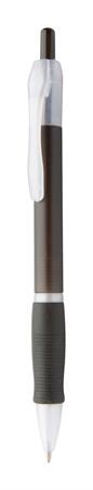 Műanyag nyomógombos golyóstoll gumírozott markolattal, áttetsző fehér klipsszel és tollheggyel. Kék normál tollbetéttel szállítjuk. Anyag: műanyag (ABS) / gumi Méret: o10×145 mm Emblémázását, feliratozását vállaljuk.