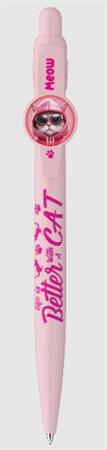 Kedves színes golyóstoll, öröm vele írni. Cicás motívumokkal díszített nyomógombos mechanikával működő golyóstoll. Cserélhető X-20-as betéttel. Golyóátmérő: 0,8 mm. Íráshossz: 2500 m. Írásszín: kék.