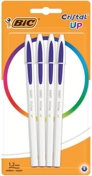 Bic Cristal Up Golyóstoll, Kék Jellemzők:1,2 mm-es közepes tollhegy, amely 0,35 mm-es vonalvastagságot biztosít. Fehér test. 4 darabos buborékcsomagolásban. Írás színe: kék
